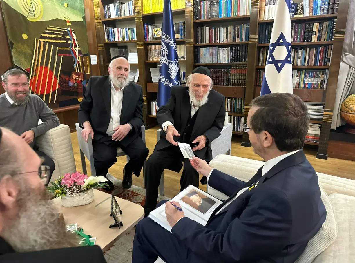 הסיפור מאחורי התמונה: שורד השואה בן ה-104 בסגירת מעגל מרגשת עם הנשיא הרצוג